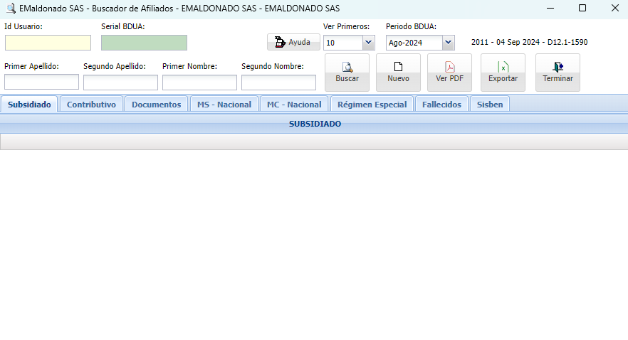 Programa para administrar bases de datos e informes relacionados con la BDUA, Direcciones Locales de Salud, Secretarías de Salud.